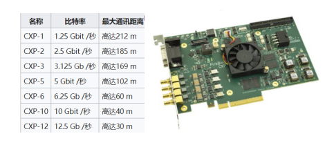 CoaXPress是專業(yè)和工業(yè)成像應(yīng)用(例如機(jī)器視覺、醫(yī)學(xué)成像、生命科學(xué)、廣播和國防)的全球最快標(biāo)準(zhǔn)。它是一種不對稱的點(diǎn)對點(diǎn)串行通信標(biāo)準(zhǔn),可通過單根或多根同軸電纜傳輸視頻和靜止圖像,CXP 1.1相機(jī)已經(jīng)面世了十年,它具有用于視頻、圖像和數(shù)據(jù)的每條電纜高達(dá)6.25 Gbps的高速下行鏈路特點(diǎn),其使用的標(biāo)準(zhǔn)連接器為75?BNC和DIN1.0/2.3;目前CXP1.1引入的單個(gè)通道最大傳輸速度為6.25Gbps,對于CXP-10,CXP 2.0將其提高到10 Gbps,對于CXP-12,CXP2.0將其提高到12.5 Gbps。